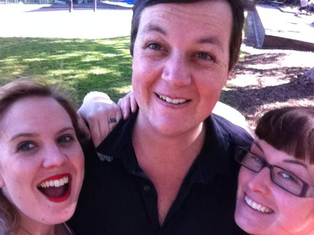Nel, Bren, and Sarah rehearsing Confetti in September in Newtown.