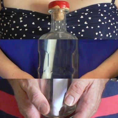 4) On Monday 31 December 2012, at any time of the day or night before the clock hits midnight, wherever you are in the world, find somewhere special near you and leave your message in the bottle for a stranger to find (or not find). Hide it in a library, squeeze it between rocks at a park, place it on a shelf in a supermarket, or throw it into the ocean.