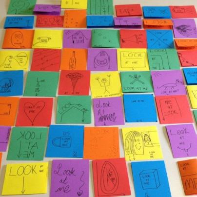 Look At Me is a unique interactive treasure hunt in which participants will have the opportunity to traverse the site, searching for clues that will unlock fun and unusual challenges – except they won’t know there is a hunt until they’ve already started playing. The clues will be displayed on cardboard and paper of varying sizes, with the phrase “LOOK AT ME” signposting to participants to look closer – the clues can be folded out and they will reveal their task or challenge. These clues will be randomly scattered throughout the site, some in very obvious locations, others in discreet and hidden corners. The hunt is afoot all night long, so participants can dip in and out at any time they desire. There is no limit to the number of clues they can find, or the amount of time they spend hunting. There will also be a level of interactivity across the night, with some of the tasks requiring participants to connect with other people across the site and with Big One Little One through social media platforms and even calling them directly on their phones.